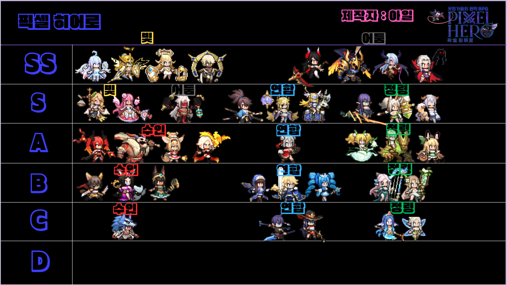 픽셀 히어로 리세마라와 티어표