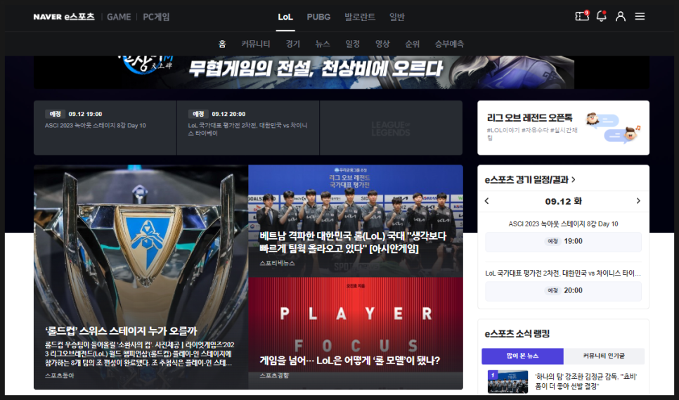 항저우 아시안 게임 E 스포츠 리그 오브 레전드 중계