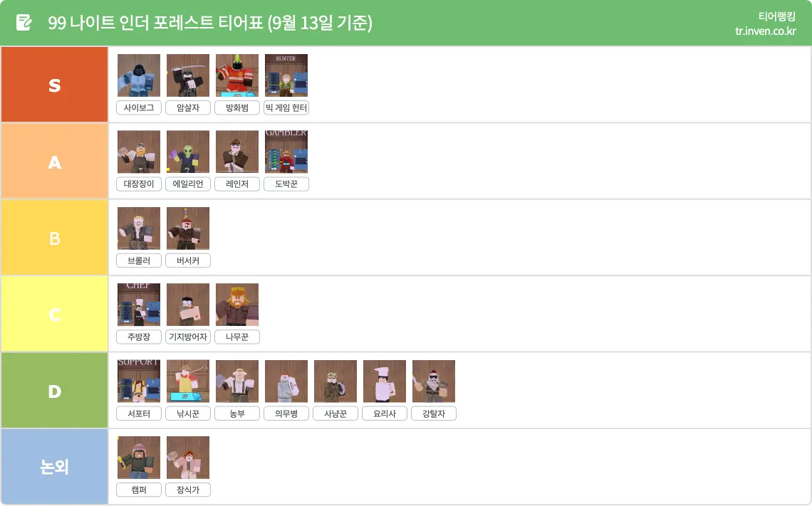 99 나이트 인더 포레스트 초보 직업 클래스 추천
