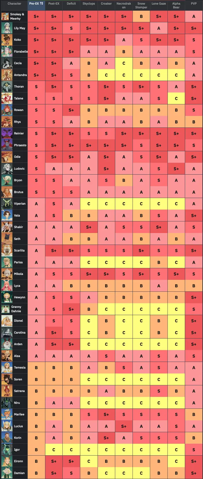 AFK 새로운 여정 캐릭터 티어 등급표