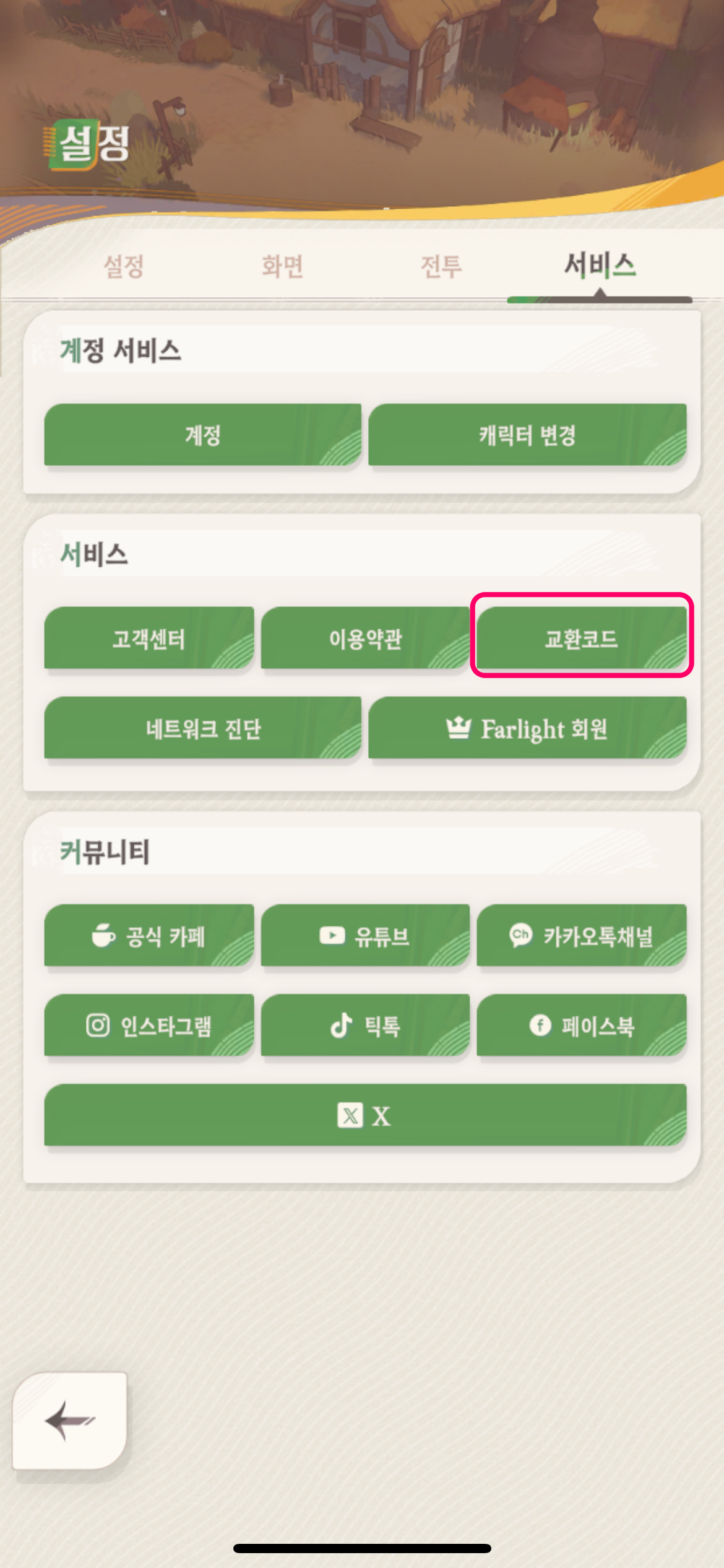 메뉴 - 설정 - 서비스 - 쿠폰 교환