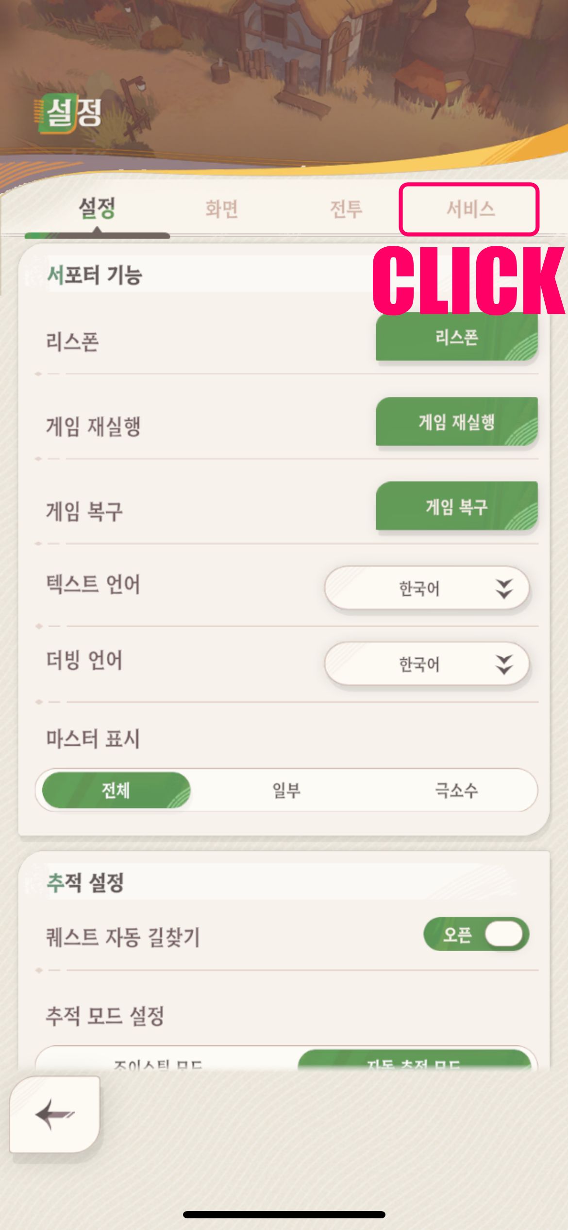 메뉴 - 설정 - 서비스 - 쿠폰 교환