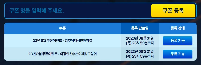 | 쿠폰 코드 | 쿠폰 보상 | 쿠폰 사용 기한 |