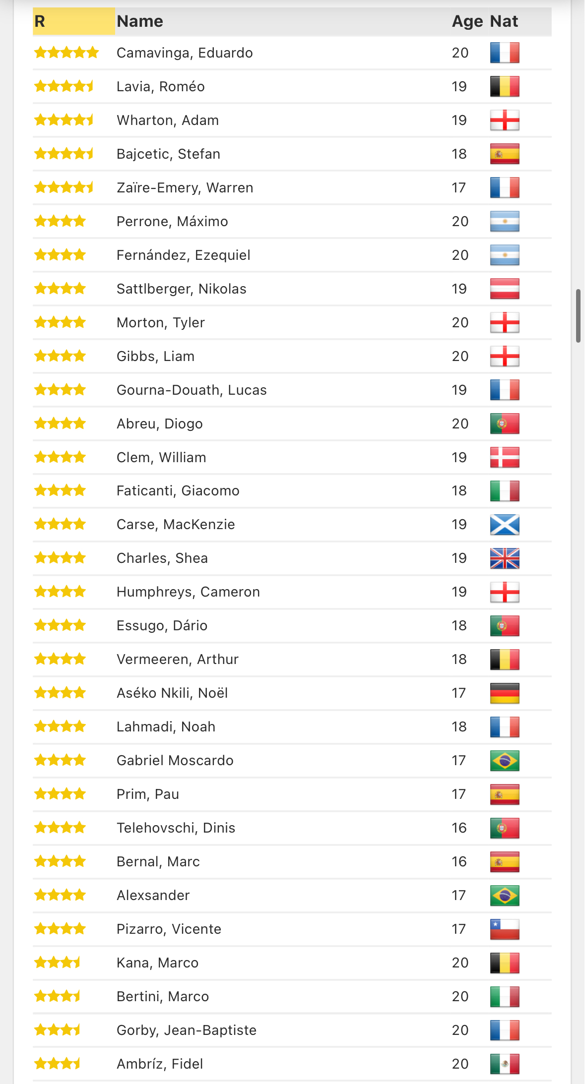 FM2024 오른쪽 풀백, 윙백 유망주