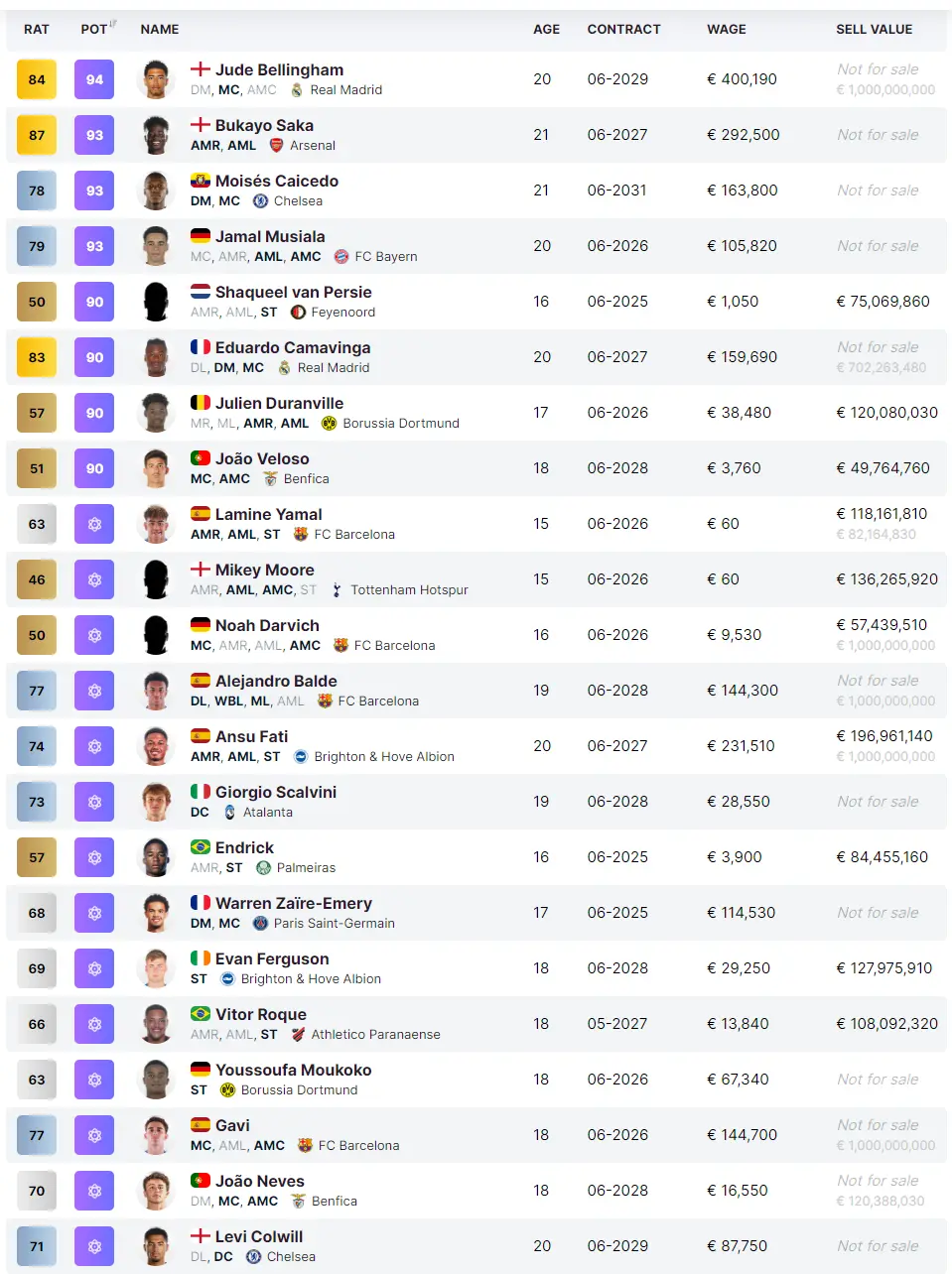FM2024 왼쪽 풀백, 윙백 유망주