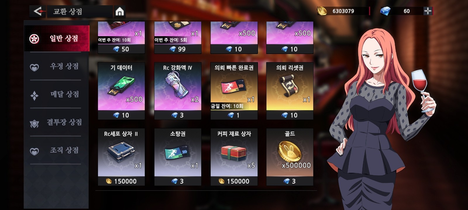 조직 상점에서 여러 가지를 교환합니다.