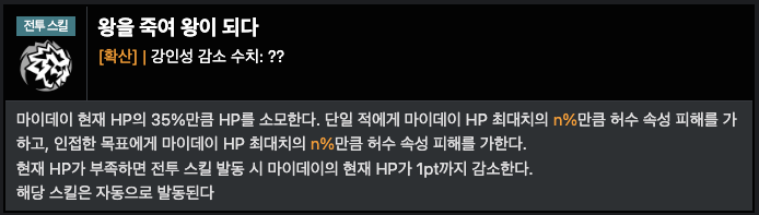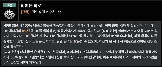마이데이 HP 최대치의 60%+[피의 원한] 상태 동안