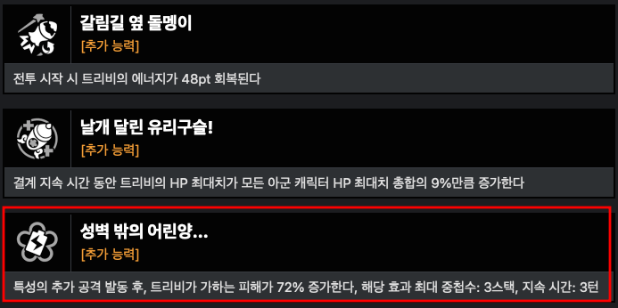누적 손실한 HP 최대치의 60%만큼 허수 속성 피해를 가한다. -> 삭제
