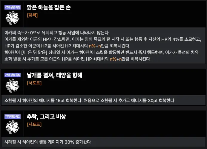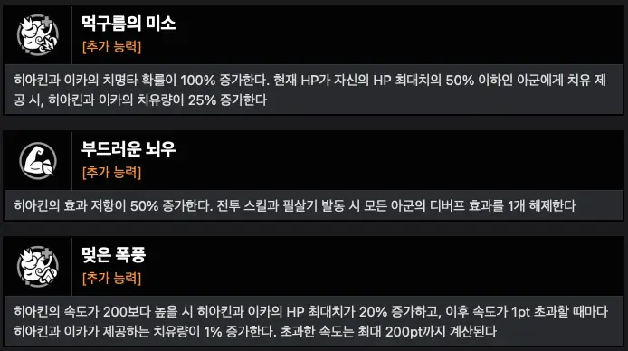 히아킨 최대 HP의 4% + 40 만큼 회복합니다.