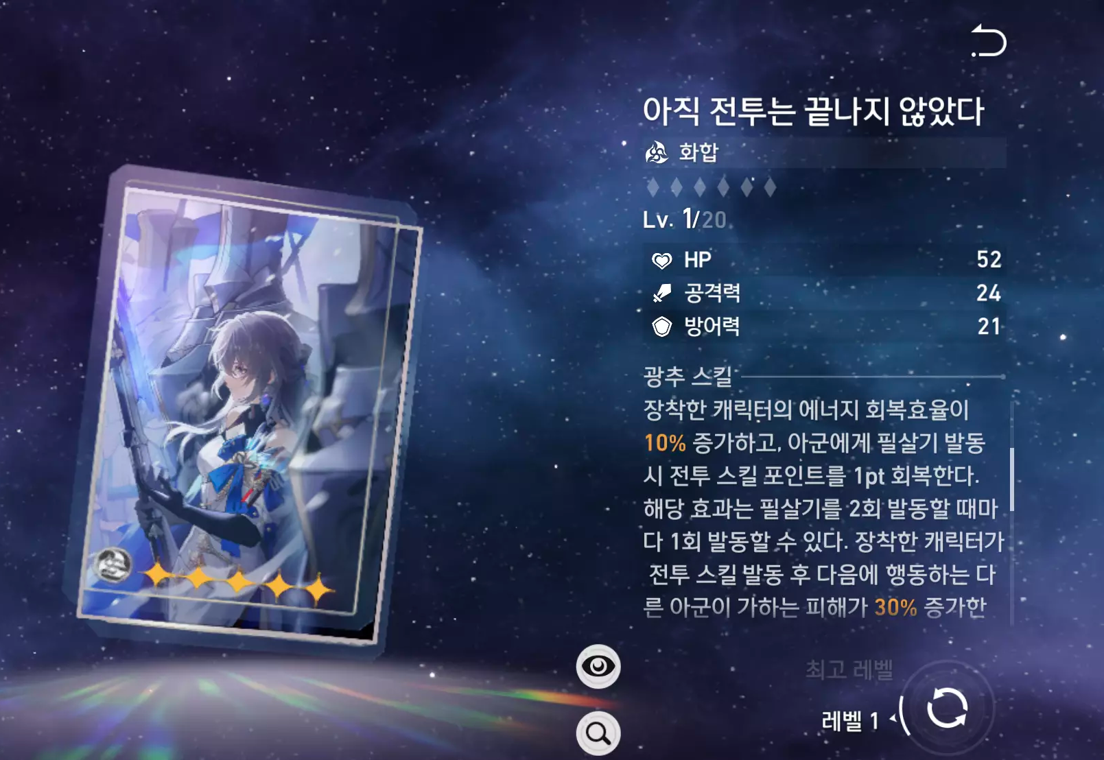 | 주 옵션 | 공격력% | 공격력% | 공격력% | 에너지 충전 효율 |