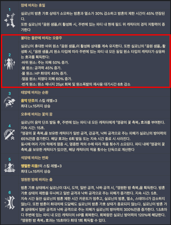 2. 실로닌이 원소 전투 스킬을 발동 시