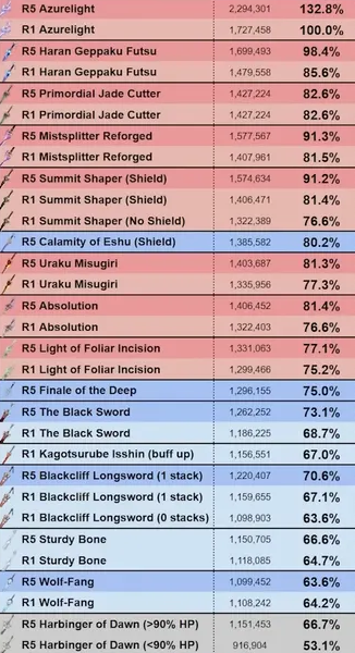 무기 효율표입니다.