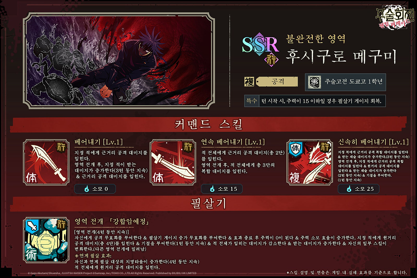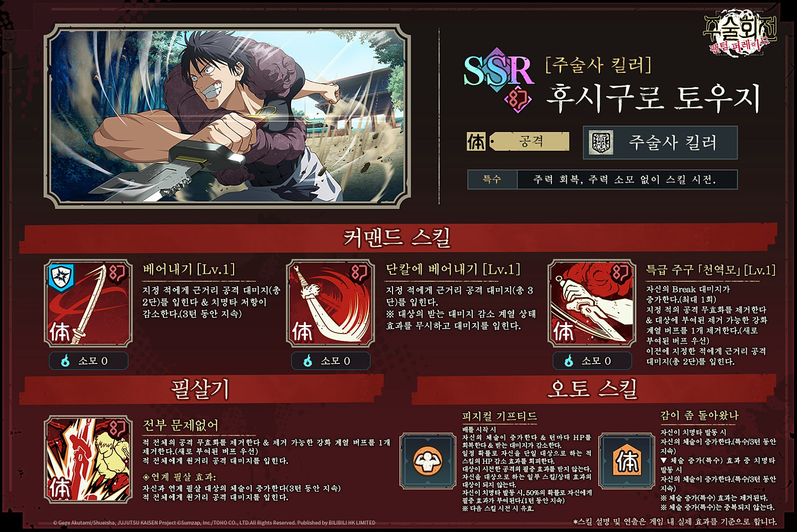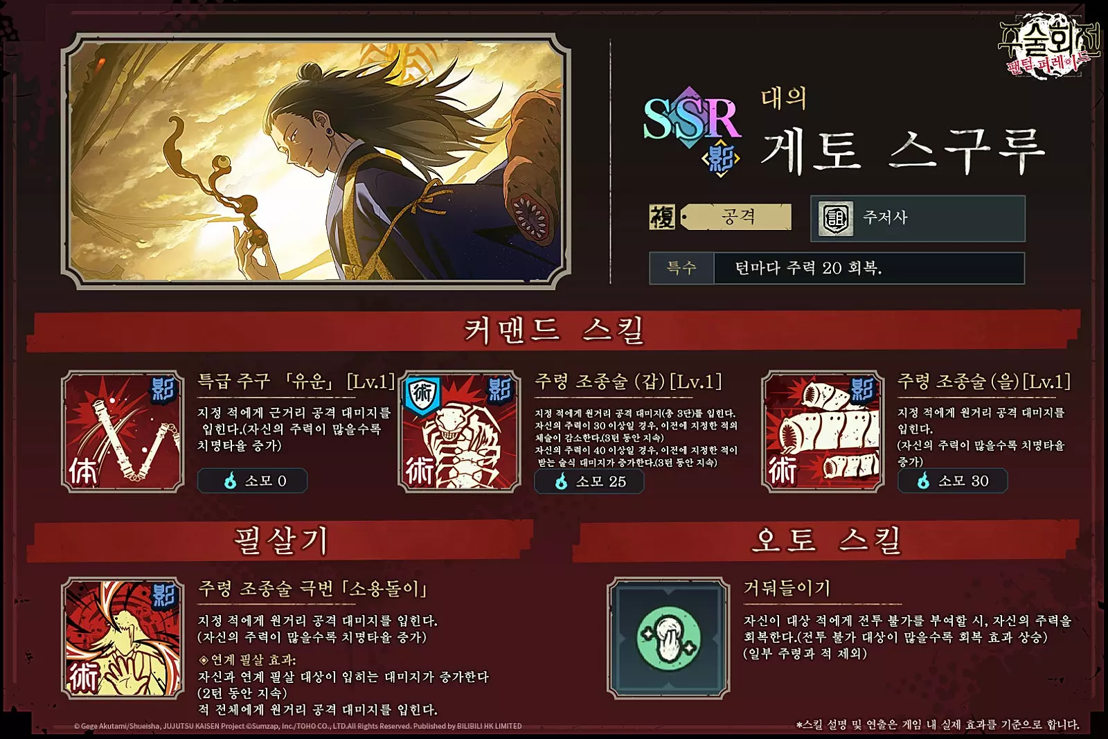 모바일 게임 주술회전 팬텀 퍼레이드.