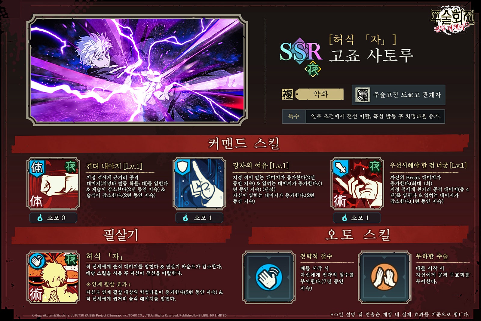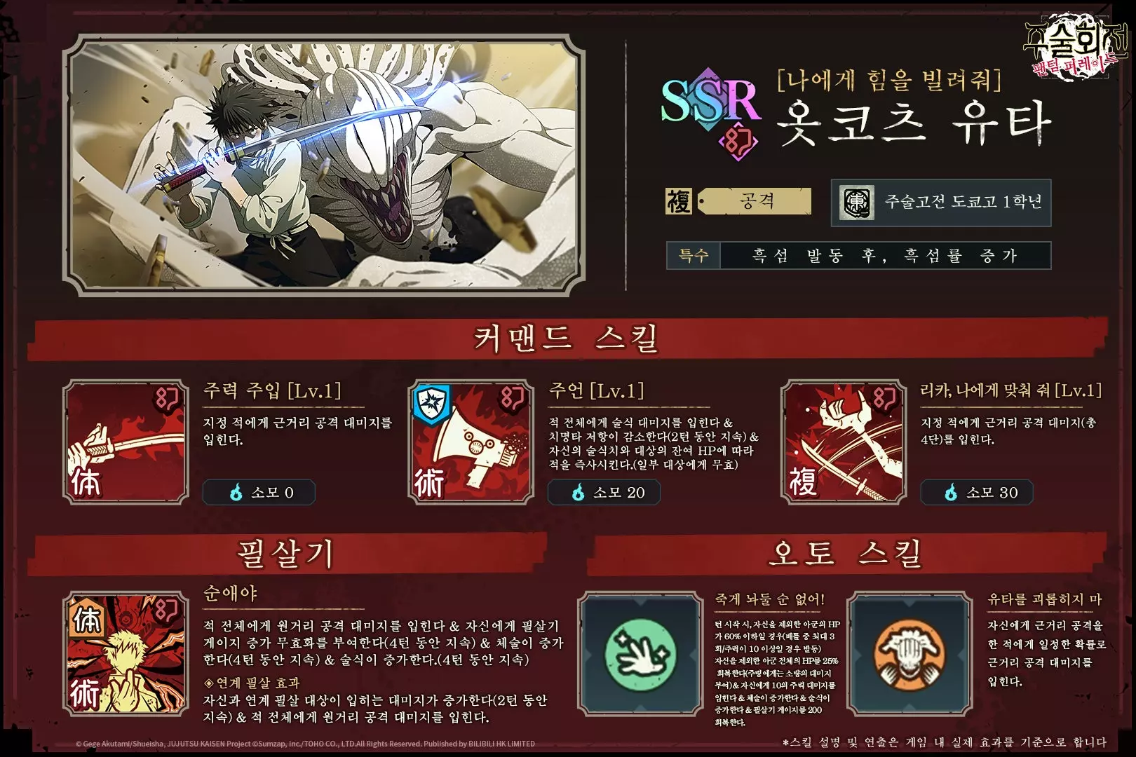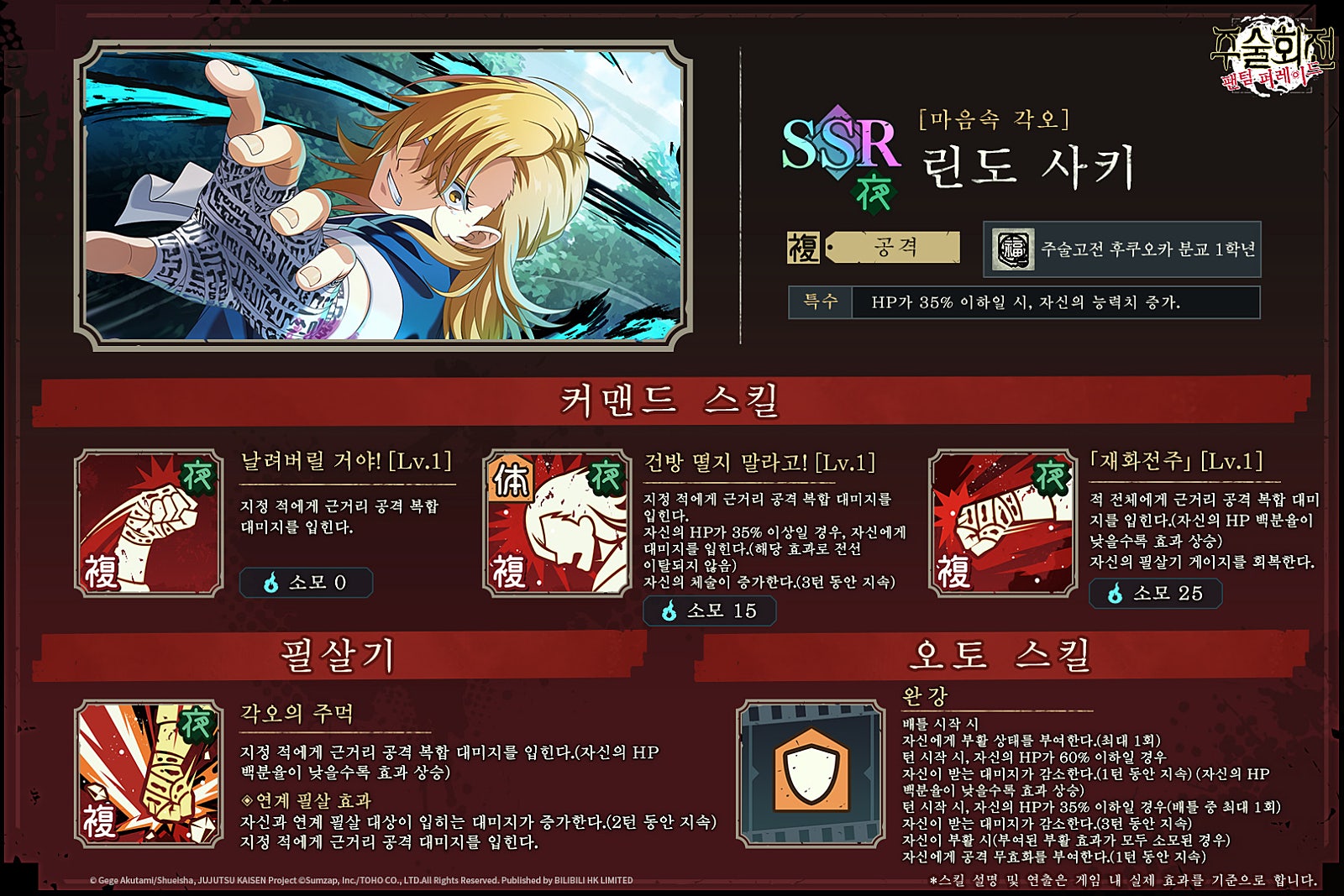 모바일 게임 주술회전 팬텀 퍼레이드.