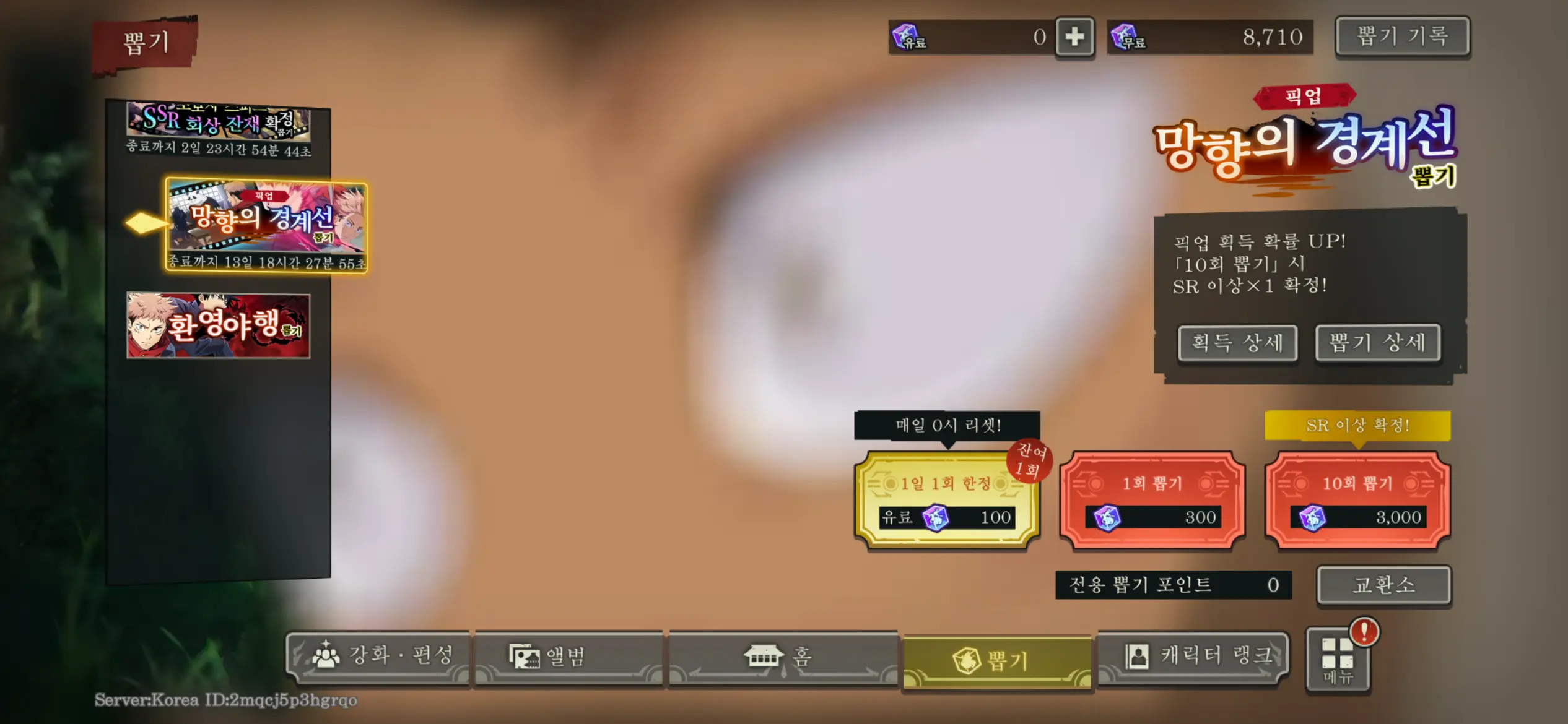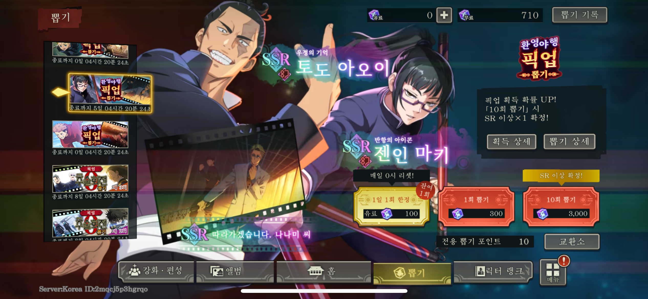 캐릭터 10회 진행해서 SSR 뽑고