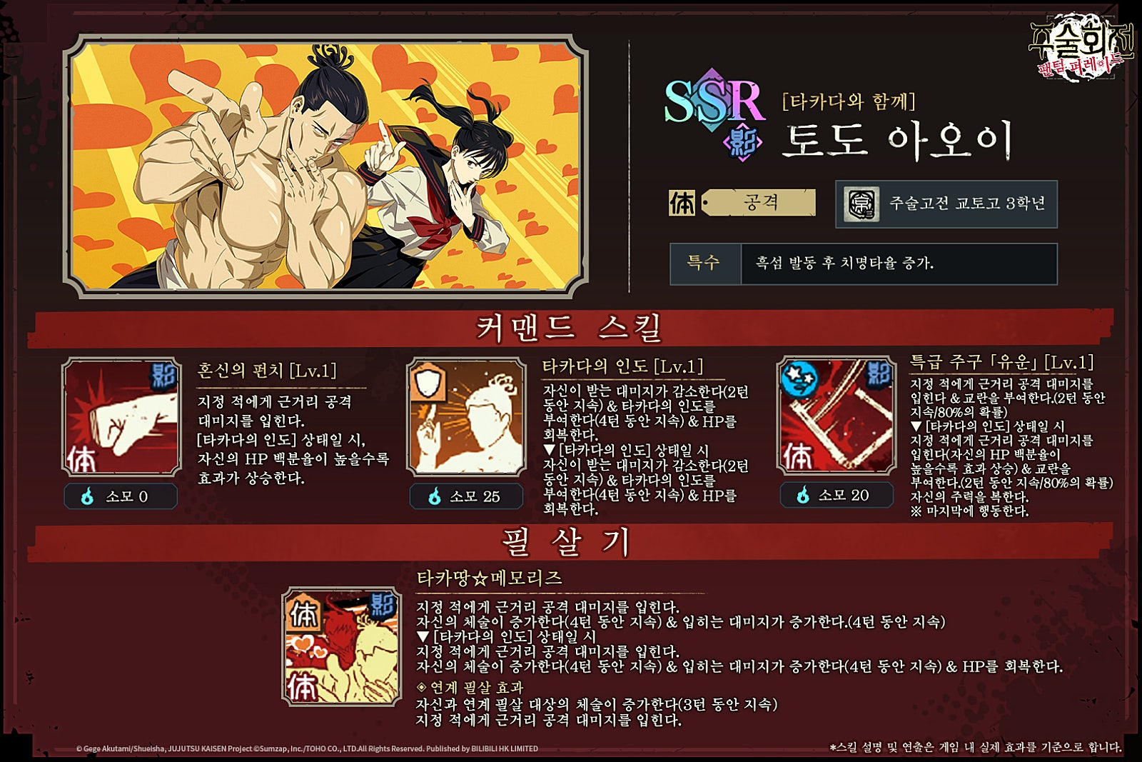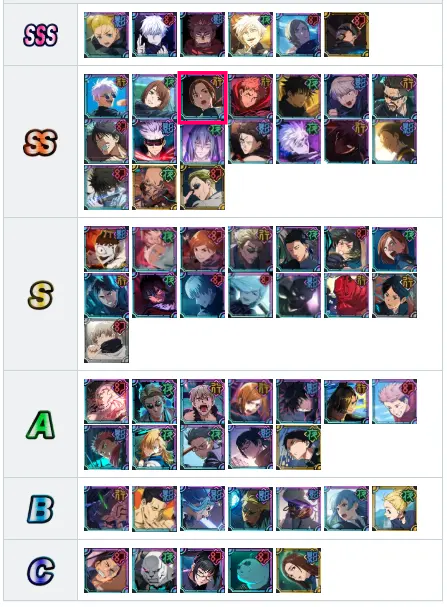 주술회전 캐릭터 티어 등급표 (7월 29일자 수정, 쇼코 추가)