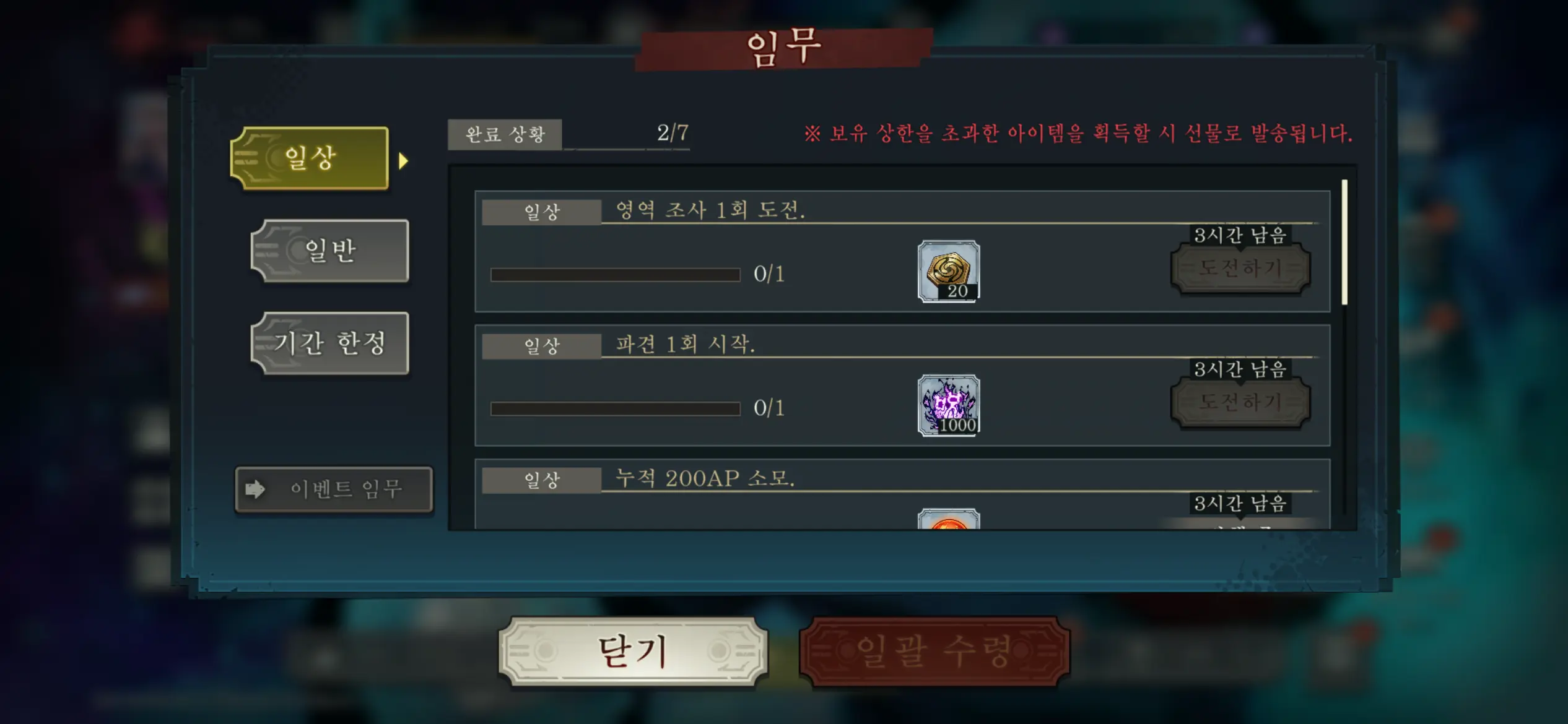 로그인 보상 2개를 다 받습니다.