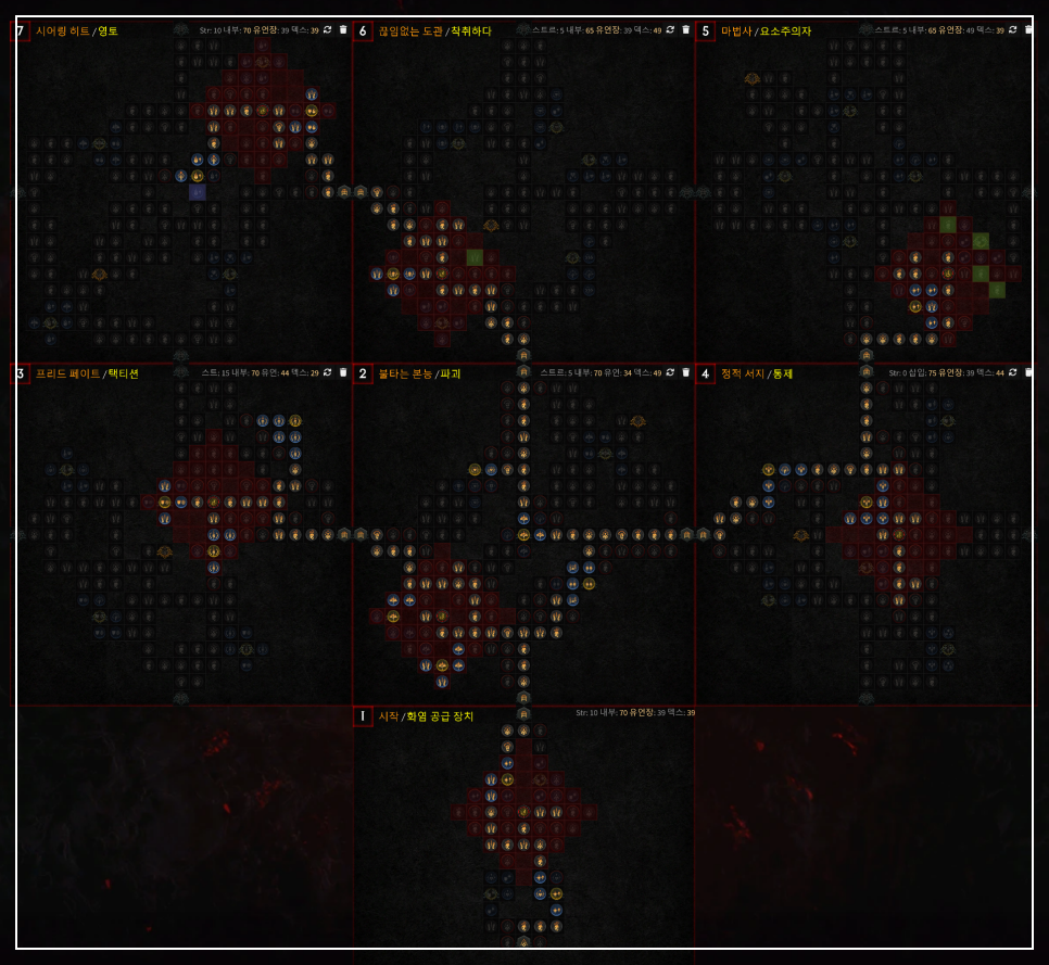 일단 전체적인 [전기 채찍] 빌드의 정복자 보드입니다.