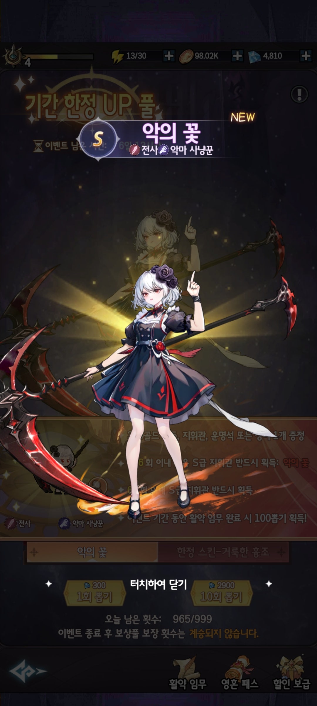 (여기서 S - 그림자 자객을 뽑아야 함..)