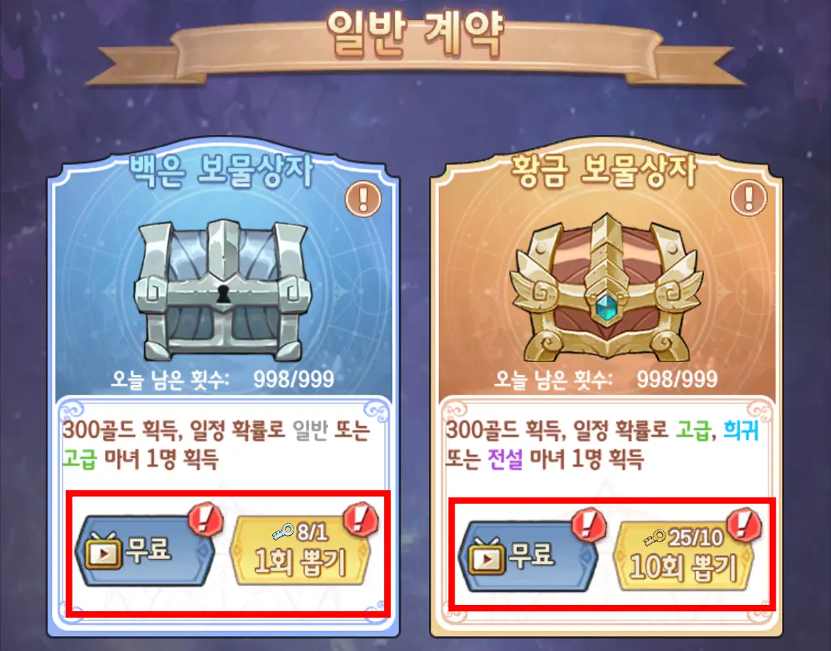 열쇠를 사용해서 뽑기를 진행해 줍니다.