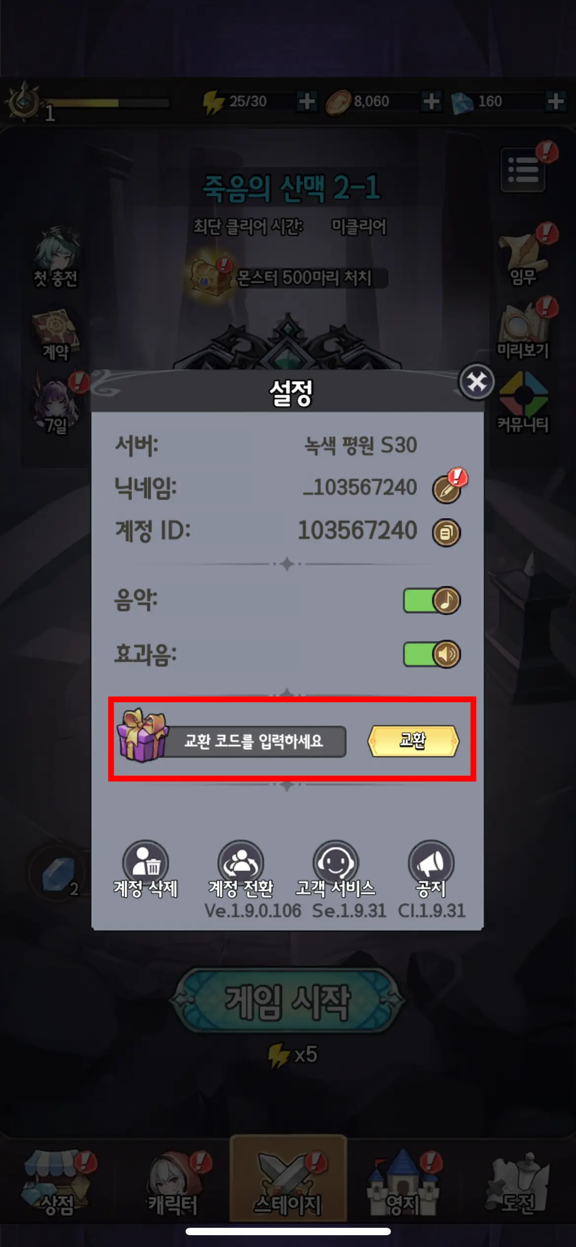 이 게임은 특히나 쿠폰 코드를 입력하고