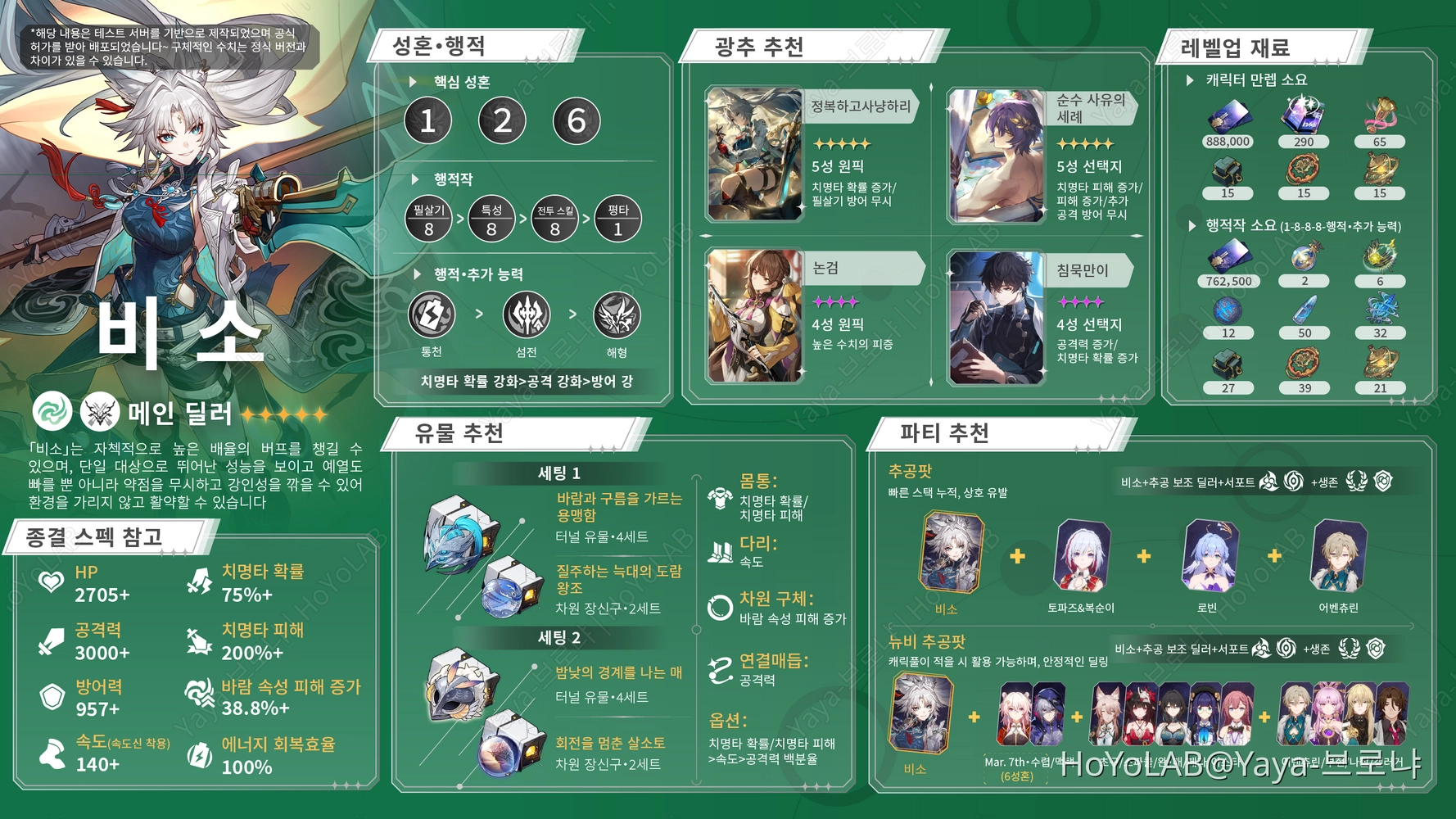 붕괴 스타레일 : 비소 공략 성능, 유물, 광추, 세팅, 파티 조합 추천 가이드 (2024년 9월)